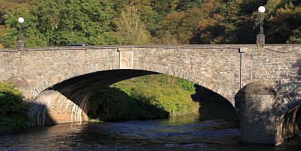 Durch den Ortsteil geht es steil bergab und unten angekommen durch eine Bahn-Unterführung an der Mündung des Rahmedebaches in die Lenne vorbei. Anschließend wandert man über die Steinerne Brücke. Die erste Brücke soll schon 1570 gebaut worden sein und war weithin der einzige gesicherte Lenneübergang. 1912 wurde die Brücke komplett erneuert.